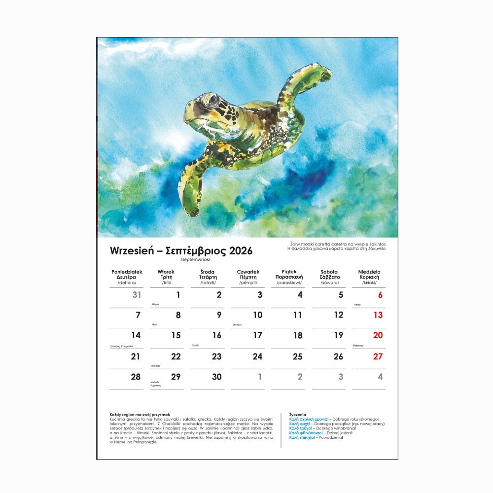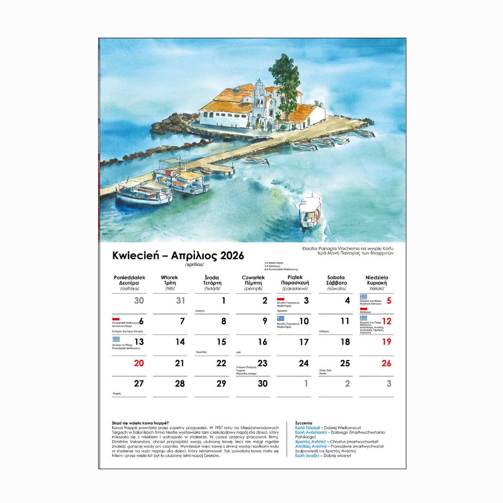 Kalendarz ścienny polsko-grecki na rok 2026 (format A3)